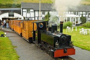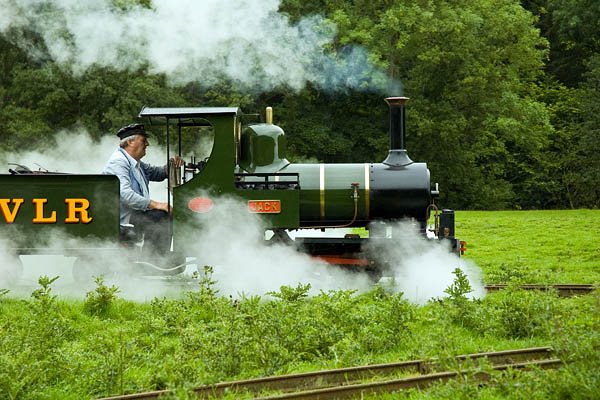 Just back from a foray into the rain-sodden foothills of mid-Wales – a fine lunch at the Lion, Berriew – then a short drive up the valley of the Rhiw to an elusive little 15″ gauge railway. No, I know a railway can’t be elusive – but it’s a private line, very rarely open to the public, perhaps twice a year. A super little setup – a complete loop of 1¼ miles through the fields beside the river, with a triangular junction leading to the terminus station. “Powys”, an 0-6-2T built by Severn Lamb in 1973 (similar to Dougal on the Evesham Vale),