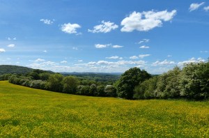 Buttercups and distant hills