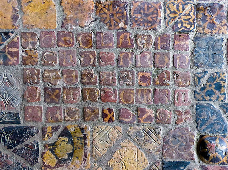 Been here once before but at dusk so no entrance into abbey proper~ waled along the path through a little orchard it seemed , next to the ruins but could go no further so never saw these amazing medieval tiles! Brilliant photo!