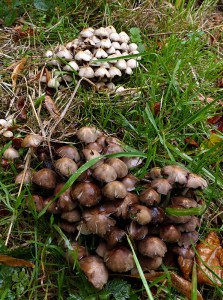 Dozens of damp toadstools