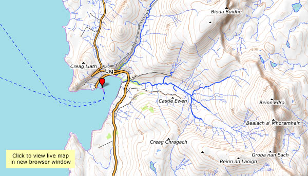 Weds. 26 April: well, we’re here (at our “northern office”), and we need to take a trip down to Uig to pick up the paper. We’ll have a walk along the pier too – see if there’s anything going on (probably not…). It’s cold and still, and there’s snow on Beinn Edra.