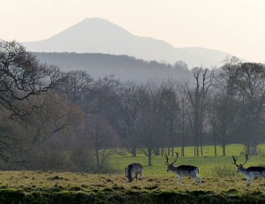 Deer and distant hills