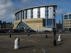 Penguins at the railway station