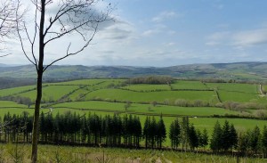 Green fields below