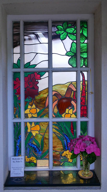 Cregneash church window (and more sheep)
