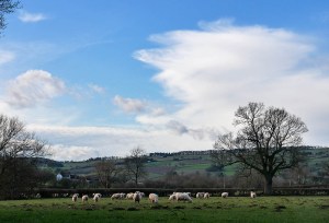 Sheep and shower clouds