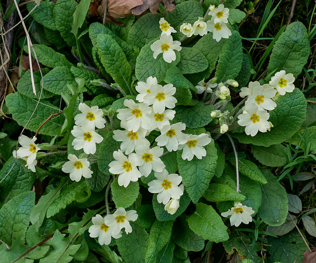 Primroses in the hedgerow