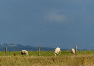 Skyline sheep and shower clouds