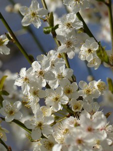 Balckthorn; white blossom; blue sky