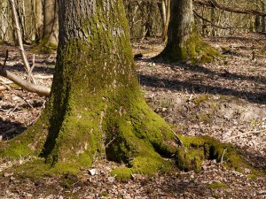 At the foot of the trees