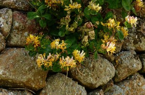 Old wall and honeysuckle