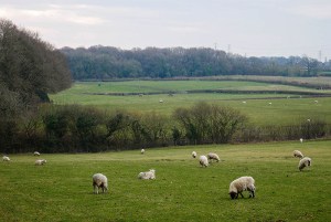 Through a gap in the trees