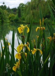 Yellow flags beside the pool