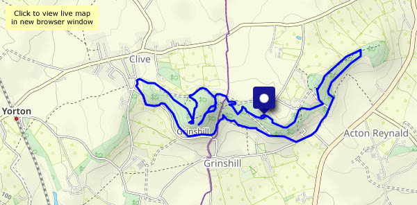 … around Clive and Grinshill. Once again, the sunshine is very pleasant, but there’s a hard frost in the shade. A very interesting walk through woodlands and around old quarry workings, which present themselves as impossibly clean-cut rock faces in amongst the trees. Back at the start, an unusually inquisitive robin insists on checking inside the car for any spare crumbs. It nearly came home with us!