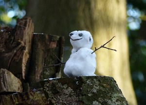 Micro-snowman on a stump
