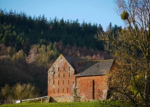 Brick barn and mistletoe