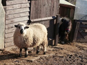 The sheep is bigger than the pony!