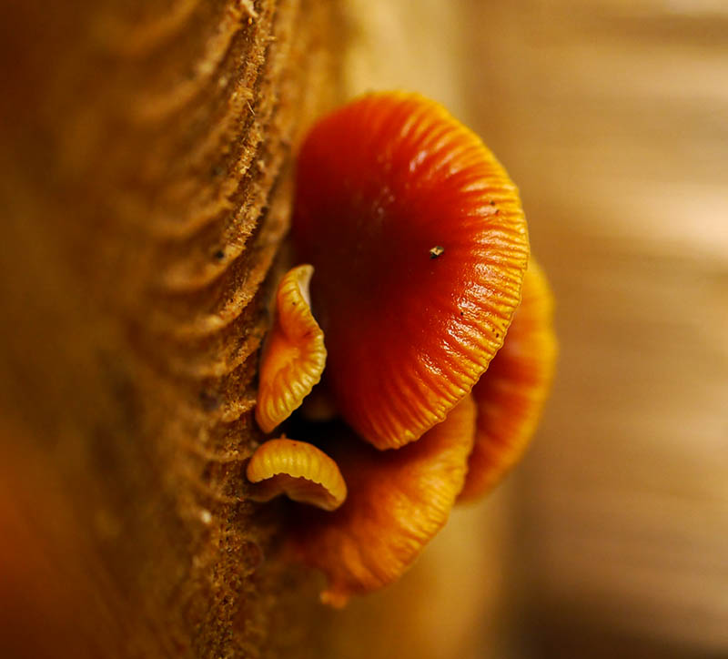 Tiny fungus on sawn wood