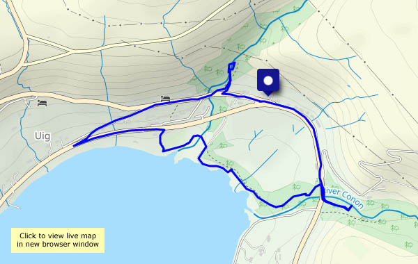 Skye: Thursday 6 April: a morning outing, down to Uig to collect the newspaper – and an hour or so around the woodlands, visiting the Rha waterfall and revisiting the mossy trees beside the shore. It’s very green and very damp here.