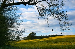 Yellow field with ducks