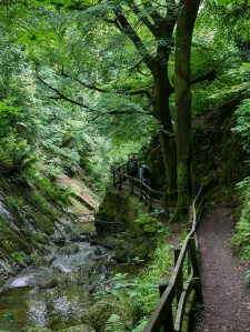 A narrow glen and a scenic walkway