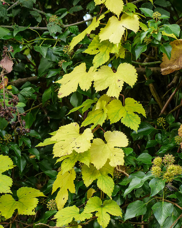 Hop leaves in the hedge