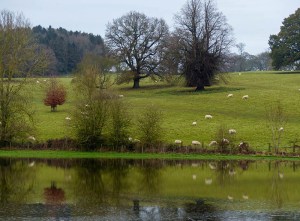 Sheep beside the pool