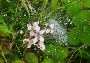 Bramble blossom and raindrops