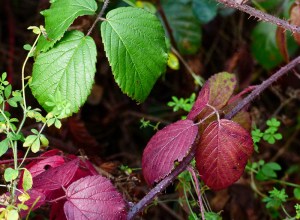 Gren and red bramble leaves