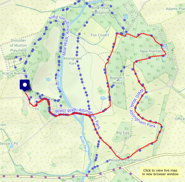 The Tern’s flood plain is well filled today! ‘Lake’ is fair description of the temporary expanse of water, the outcome of Bert’s downpours and the rapid melting of snow. The ground’s rather soggy too, in places, but mostly the walking is good underfoot. Once again, we’re following a different route around the extensive parkland – the deer are out and about, and we won’t get a good view of them if we stay in the woods. We won’t be able to enjoy the sunshine there either.