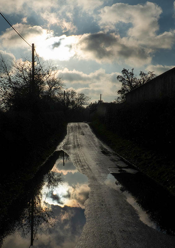 Low sun, wet road