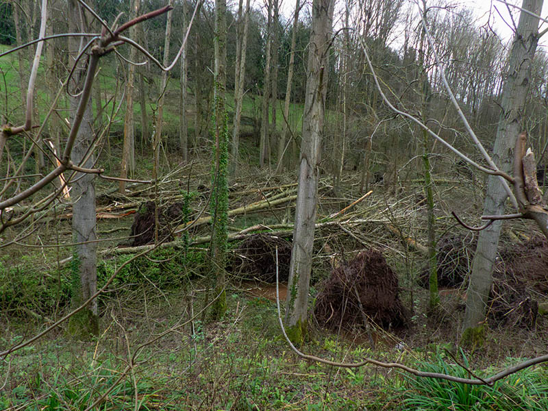 Deciduous downed below the dam