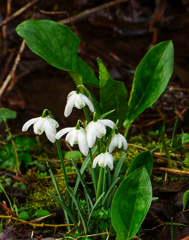 Snowdrops; first leaves of cuckoo pint