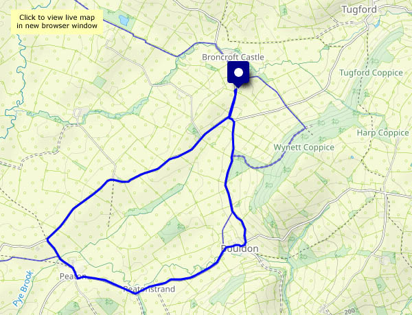 We’re in quiet south-west Shropshire today, walking in the woods to finish up at Bury Ditches, a fine hill fort with extensive views over the surrounding countryside. Under a clear blue sky and in strong sunshine, it’s very pleasant to walk in the cool air on the fringes of the woodland, where conifers give way to deciduous trees, the sunshine dappling the pathways. The day’s high point in every sense is the fort, where a clear path winds along the rim of the main earthwork, through heather and glowing broom. Finally, a short straight path leads back down to the start.